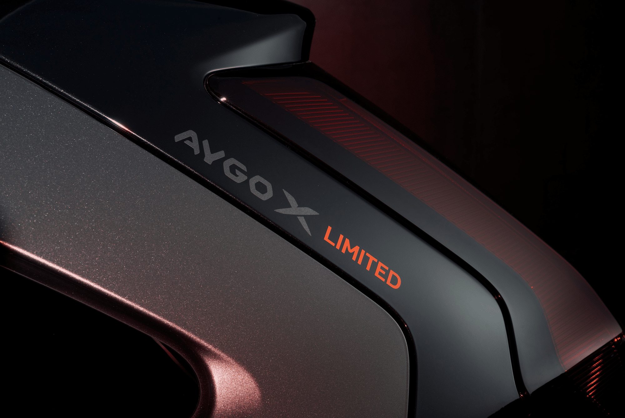 La nouvelle ligne de toit biseautée renforce encore l’impression de dynamisme. À l’avant, les projecteurs haute technologie s’étirent le long du capot tels des ailes. Plus bas, la calandre inférieure s’associe aux antibrouillards et à la protection du soubassement pour former un double trapèze inhérent à l’identité de l’Aygo.